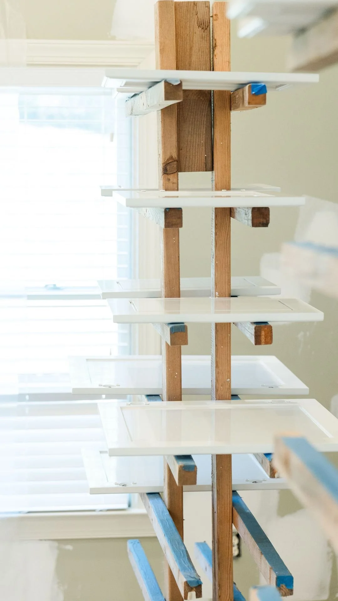 Sand, prime, & paint cabinet doors, drawer fronts, & bases